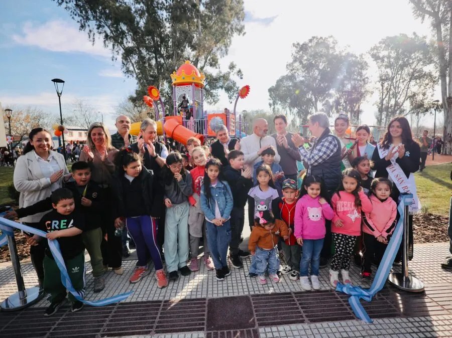 Frente a la plaza Balbino Arizu cientos de chicos y sus familias ya disfrutan del espacio que cuenta con juegos, mangrullos, playon deportivo y mobiliario urbano.