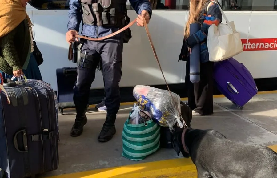 Luego de olfatear varios bolsos, logró marcar una valija y una mochila pertenecientes a L.G., lo que dio paso a una requisa más profunda.