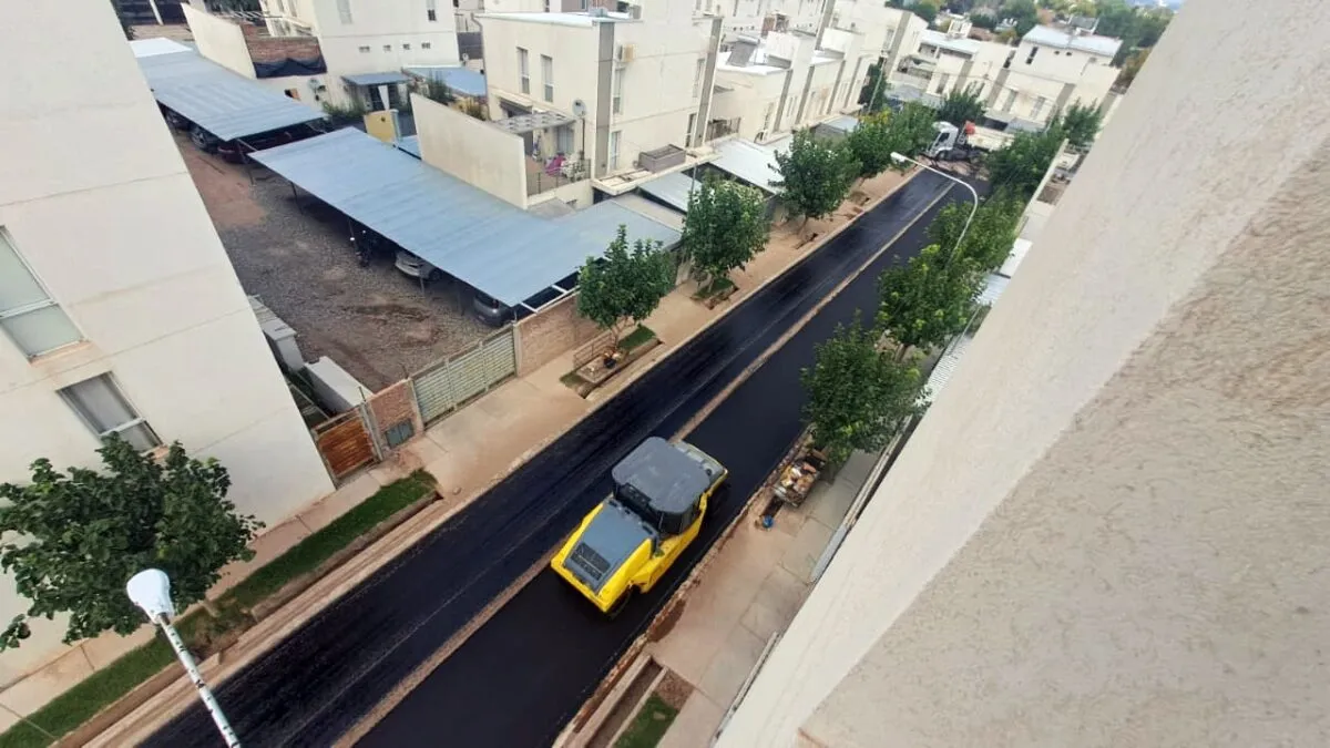 En las últimas horas el Plan de Asfalto Municipal desembarcó en el barrio Procrear. En la zona del complejo habitacional de edificios y dúplex ubicado entre las calles Moreno y Castelli ya se coloca la carpeta definitiva.