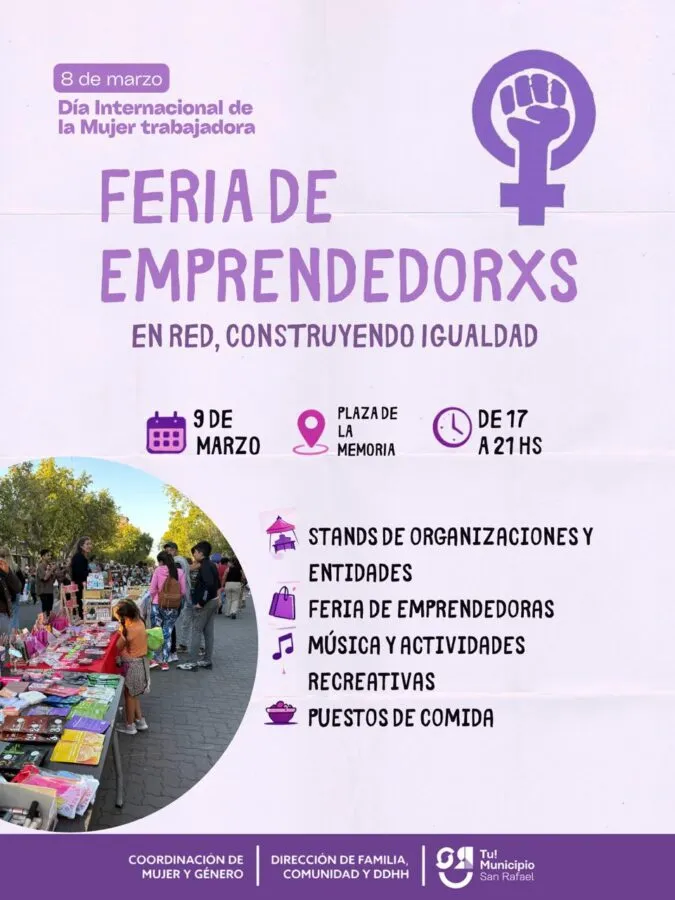 De esta manera, San Rafael se suma a la conmemoración del 8M con una propuesta que pone en valor la organización colectiva, la participación comunitaria y la visibilización de las mujeres en la vida social, económica y cultural del departamento.