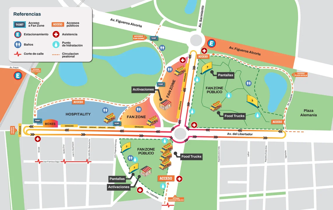Durante toda la jornada habrá pantallas gigantes, música en vivo, entrevistas y la participación de la Orquesta Sinfónica de la Ciudad en distintos puntos del circuito. Además, la organización informó que no se permitirá acampar ni la venta ambulante, con el objetivo de garantizar orden y seguridad.
